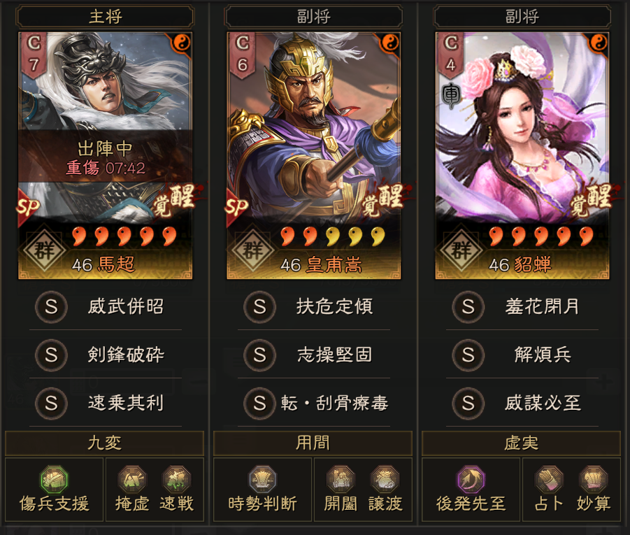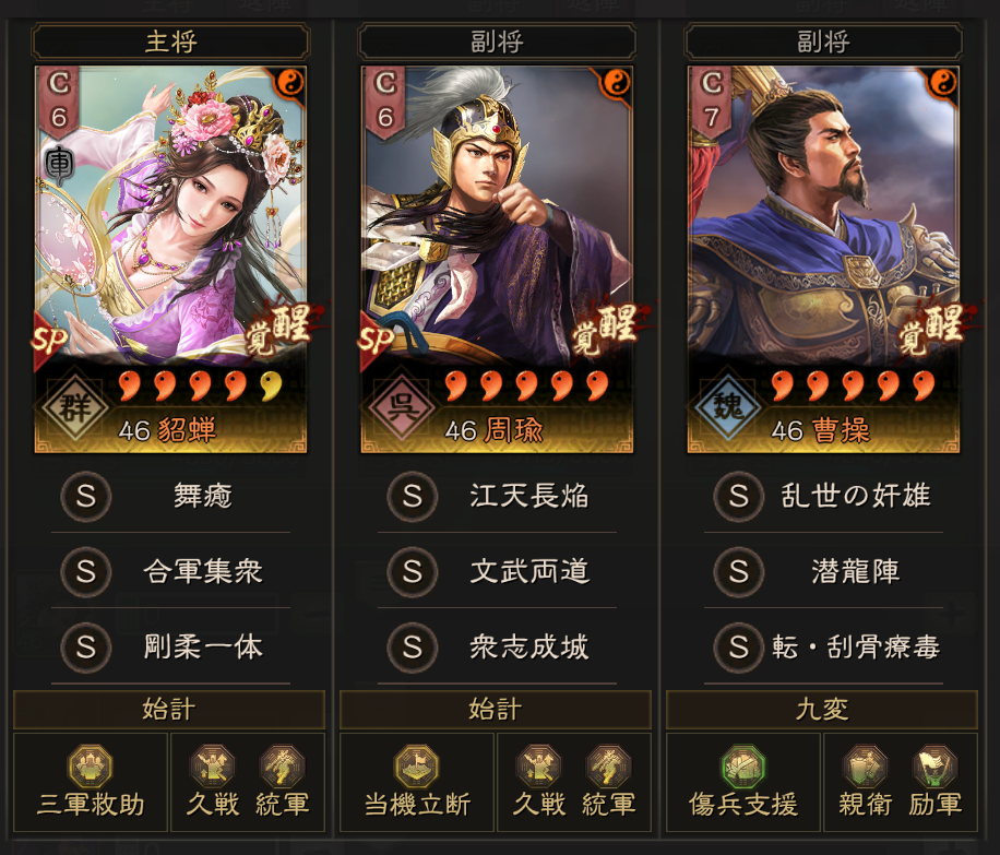 2軍は、貂馬槍です。ノーマル貂蝉を修甲旗でSにして使っています。