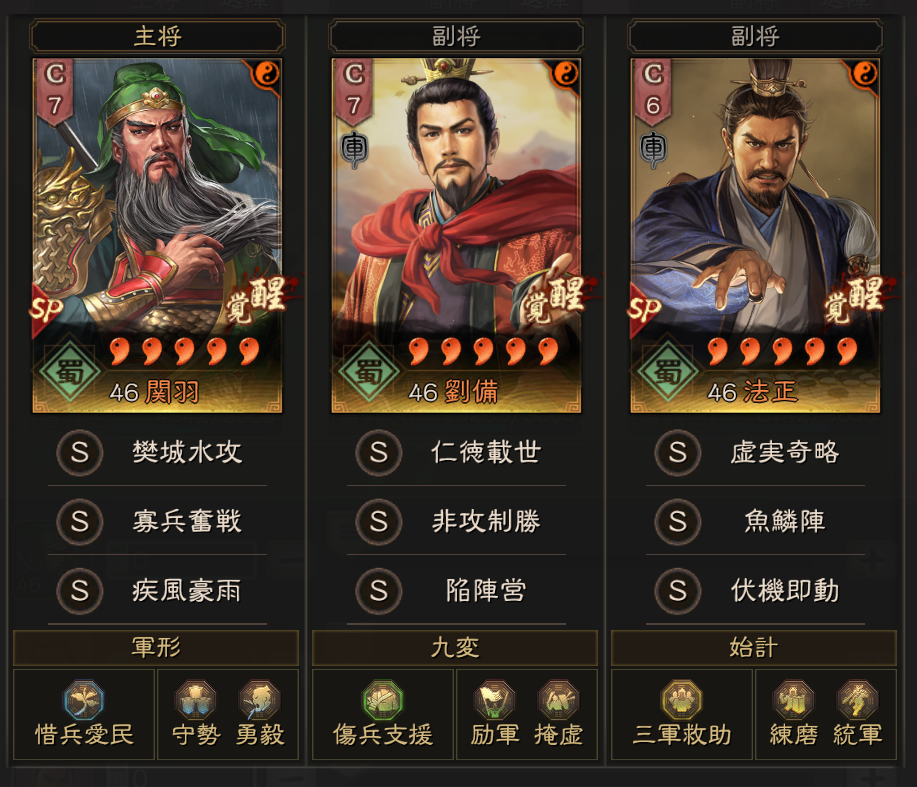 3軍は法関盾です。こちらも非常に強いのですが、藤甲兵が良いとのことですので、後で入れ替えるか検討中です。