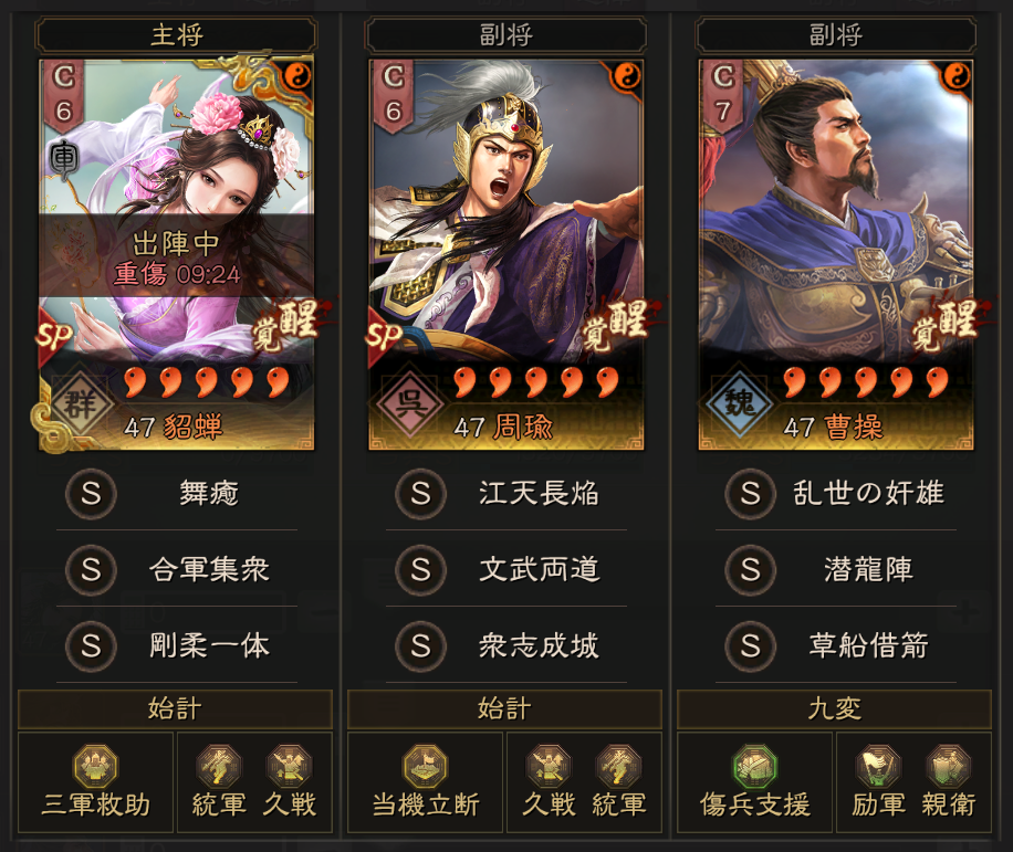 サブアカウントの1軍は、SP貂蝉弓になりました。こちらには草船借箭を使っています。