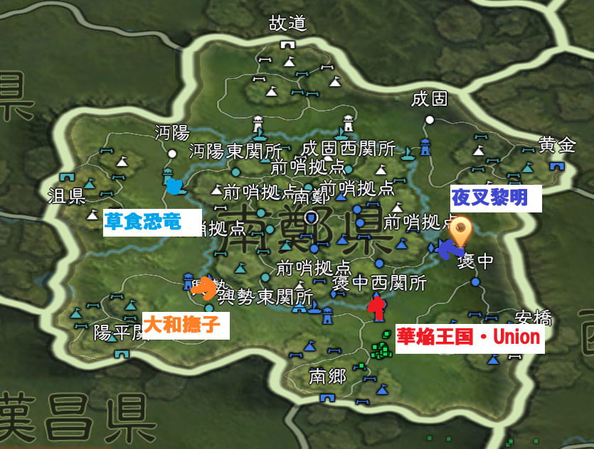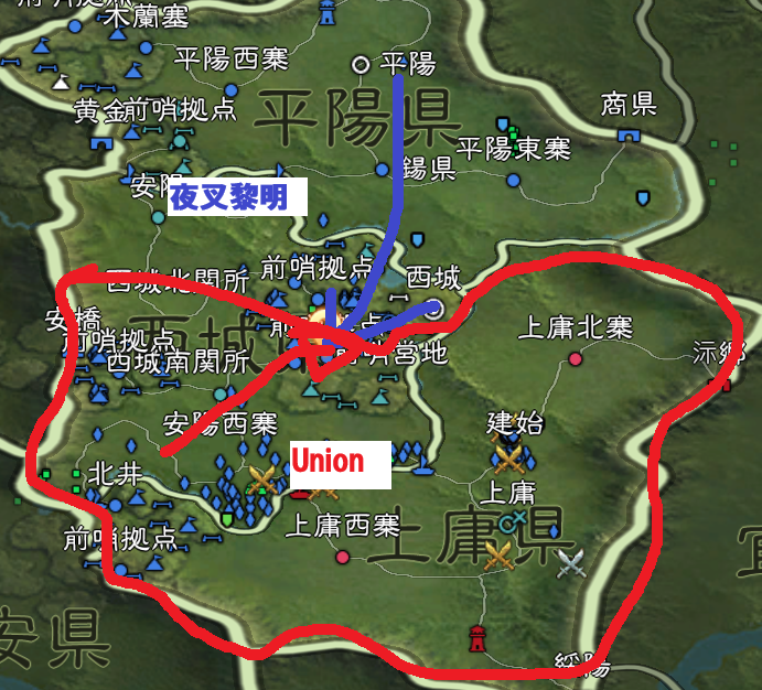 その西城北関所のすぐ南の前哨拠点をめぐって、夜叉黎明とUnionで争いました。
