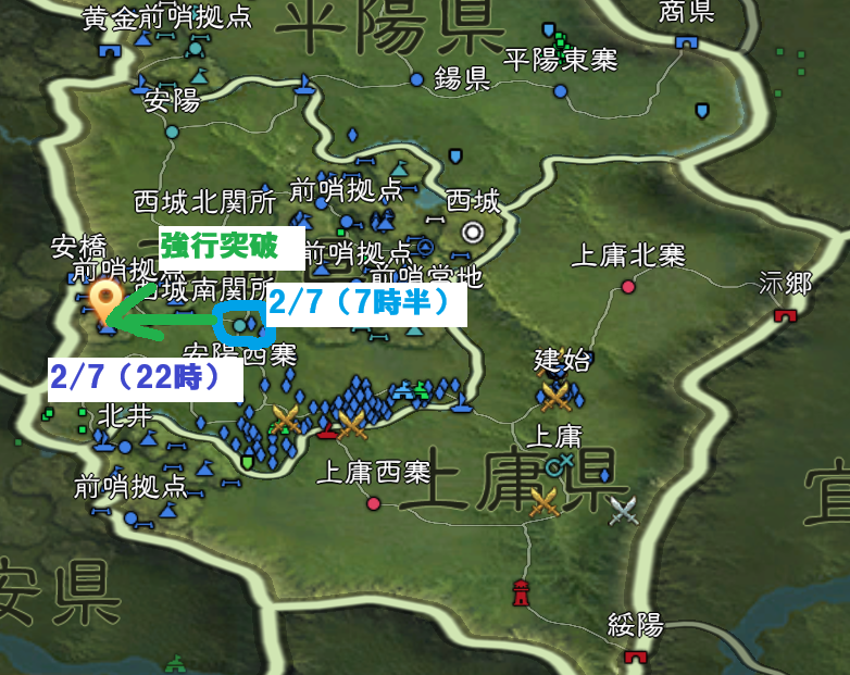 さらに、2月7日の朝7時半には、前哨拠点の先にある、西城南関所へのアタックを仕掛けます。