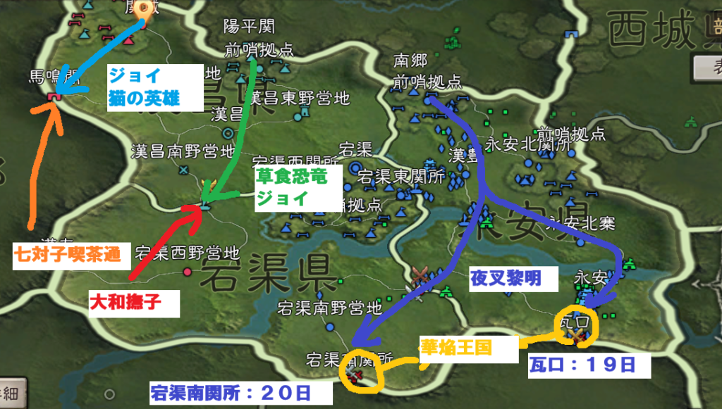 上庸方面ですが、こちらも19日の22時に月華乙女が上庸を奪取し、こちらも一定の戦果を収めました。