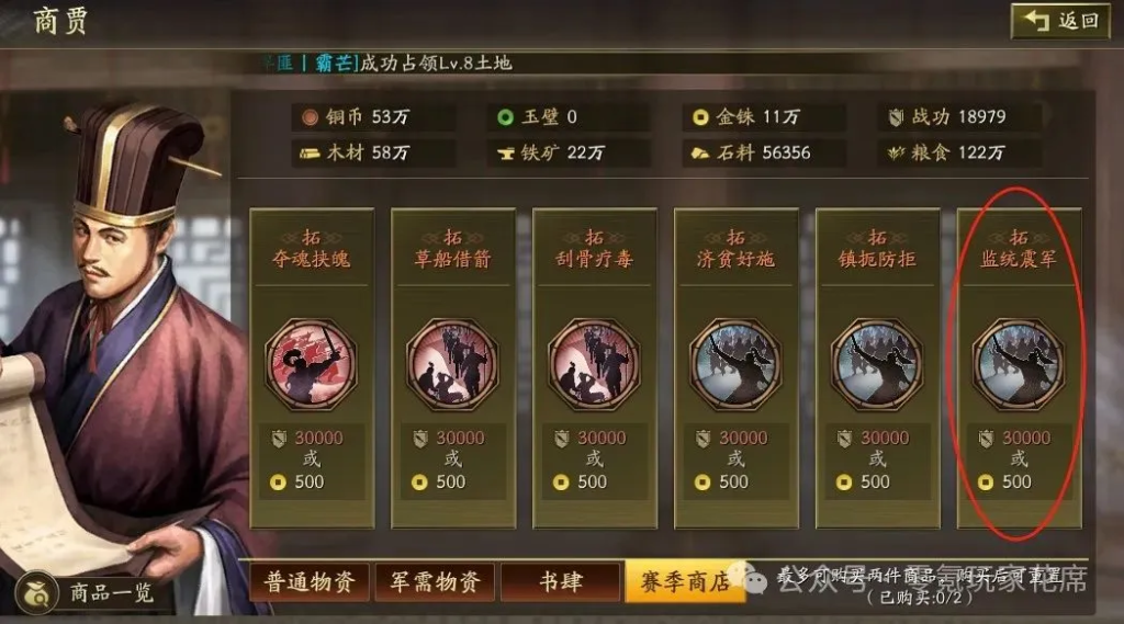 SP荀彧:竭力佐謀・刮骨療毒(三軍救助・統軍・練磨)