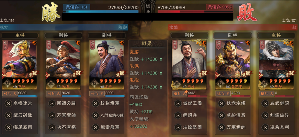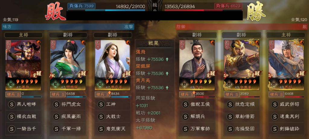 克敵制勝のところは、本来であれば、剣鋒破砕になりますが、シーズンが進むにつれて、代替戦法の克敵制勝で補うという形もあります。