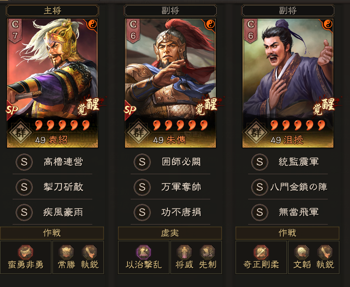 先ほども紹介しましたが、SP朱儁は、焔逐風飛・焚辎営塁の形がスタンダードです。