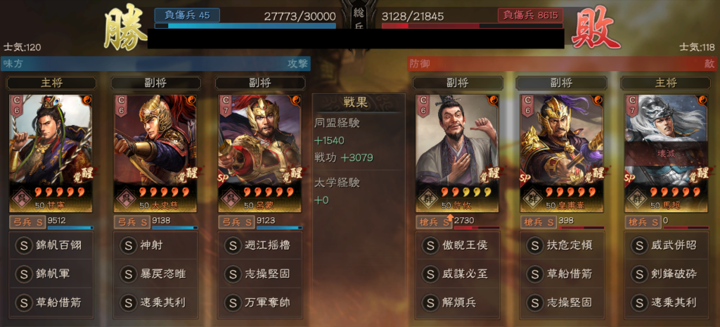今期は、孫権騎馬も法関盾の対策編成になっており、孫権が活躍する編成が目立っています。