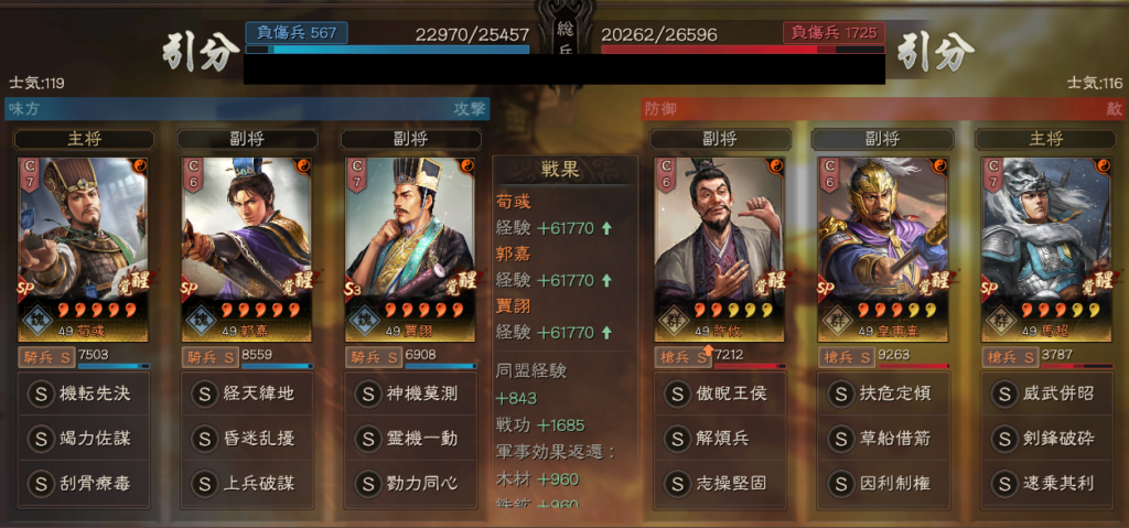 SP荀彧:竭力佐謀・刮骨療毒(三軍救助・統軍・練磨)