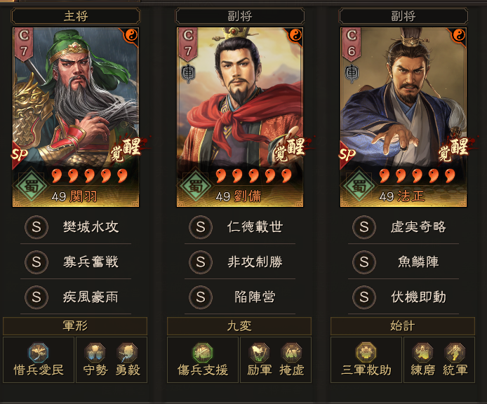 劉備:非攻制勝・陥陣営(傷兵支援・掩虚・励軍)
