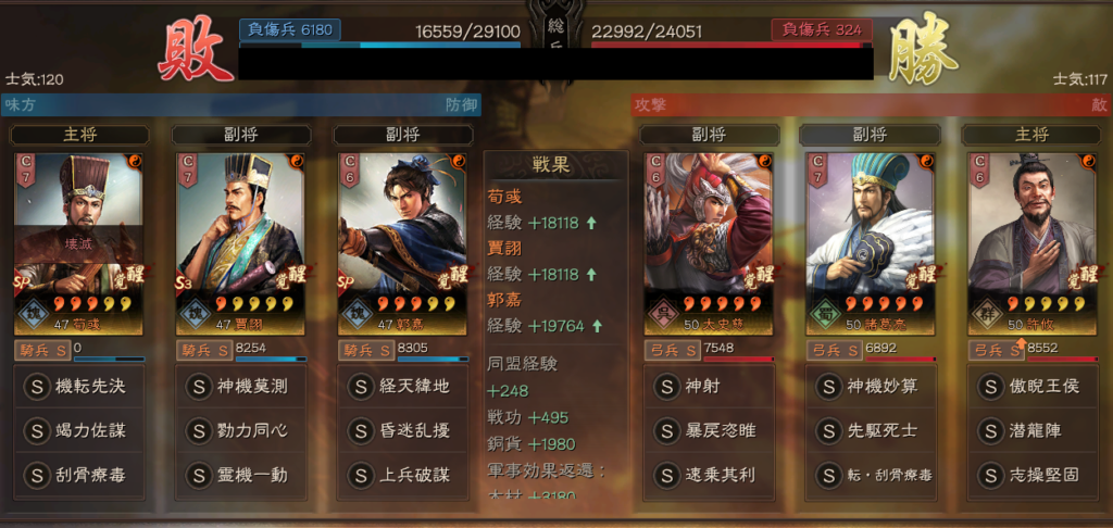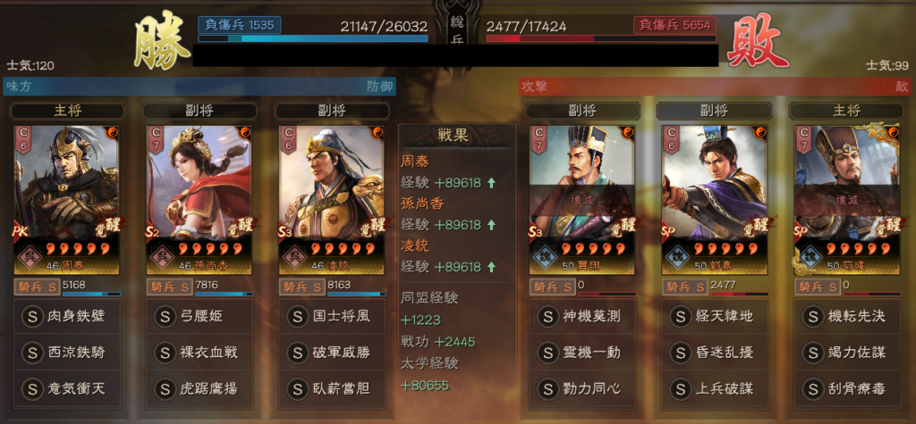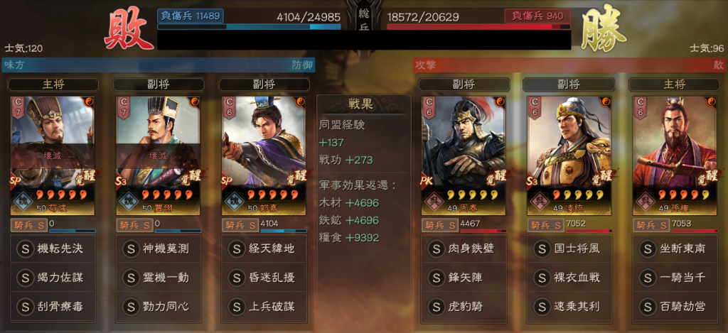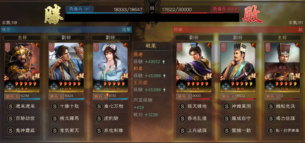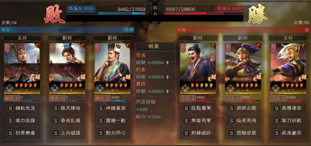 遼姫騎は、SP荀彧を先に落としてしまえる可能性があります。