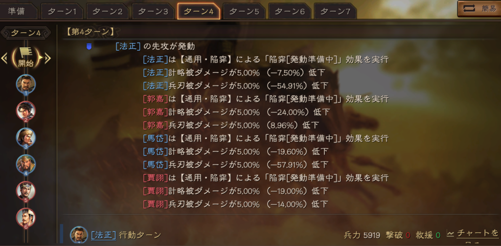 こちらは、許攸の固有戦法により、徐々に属性値を下げていく、許賈孫のようなスタイルです。