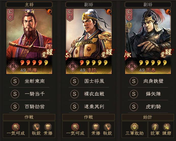 孫権:一騎当千・百騎劫営(一気呵成・常勝・執鋭)