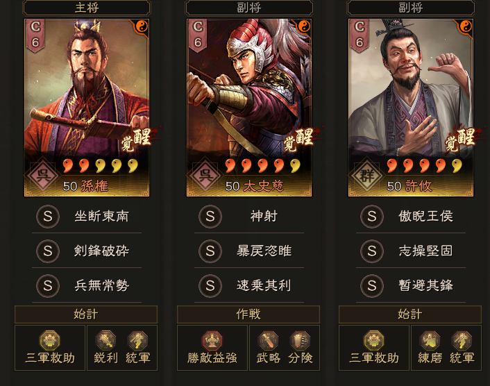 孫権:剣鋒破砕・兵無常勢(勝敵益強・武略・執鋭)
