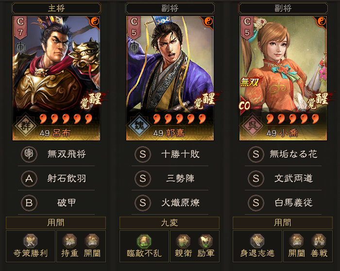 問題となるのが、郭嘉の宝玉Sくらいで、あとは戦法が思いのほか軽い編成です。