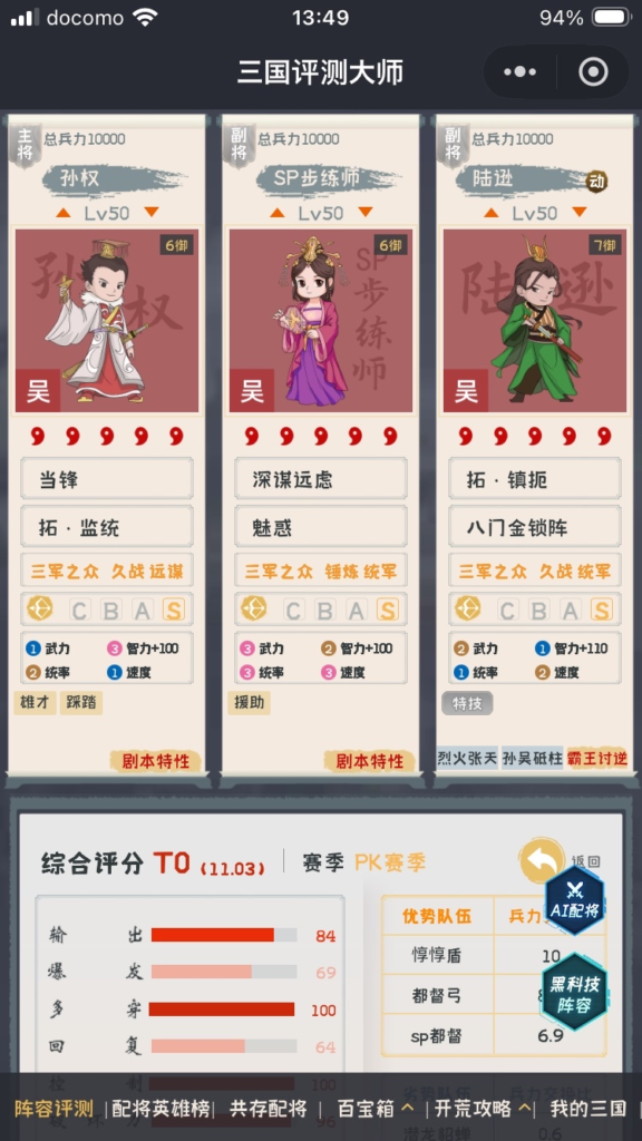陸遜を使ったタイプも、統軍武将の2つの効果、回避付与と弱体状態解除不可の2つのセットにより、非常に強力な編成になる可能性があるため、今まで孫権を使いこなせなかった孫権使いの人たちにとっては、魅力のある編成となりそうです。