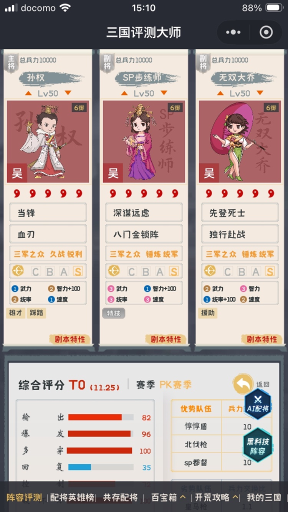 無双大喬を使ったパターンが評価値ベースでは最も高くなります。