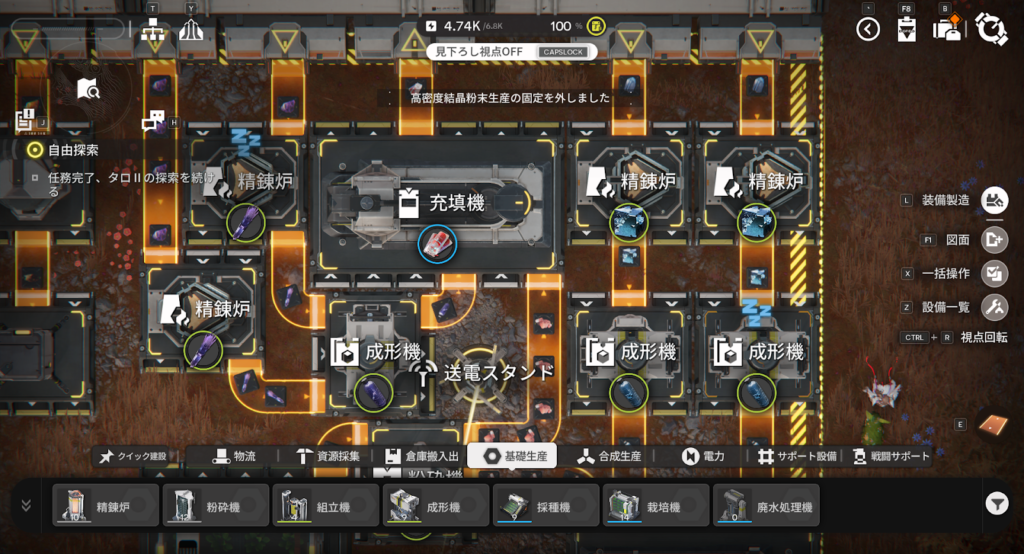 私の工業エリアでは大容量バッテリーを1つのエリアで作り続け、バッテリーの在庫と電力を確保しつつ別のエリアで蕎花カプセルⅢとシトロームの缶詰Ⅲを生産しています。