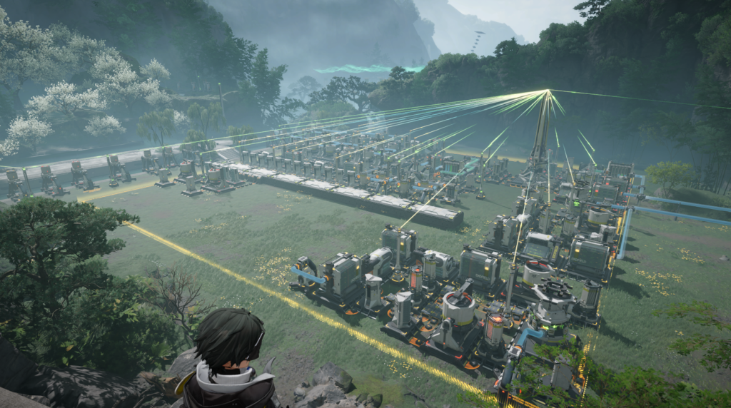 工業エリアは大きなタワーのようなものや工業施設を建てられるエリアで、鉱石や植物などのフィールドから採取可能な素材をもとにいろいろなアイテムを作ることができます。